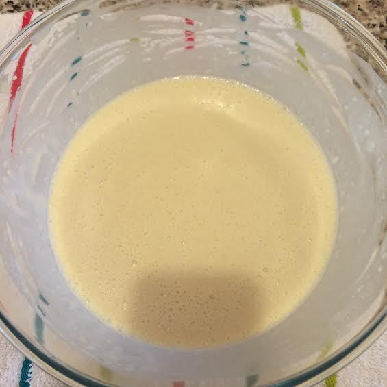 Начать постепенно добавлять молоко, помешивая венчиком.