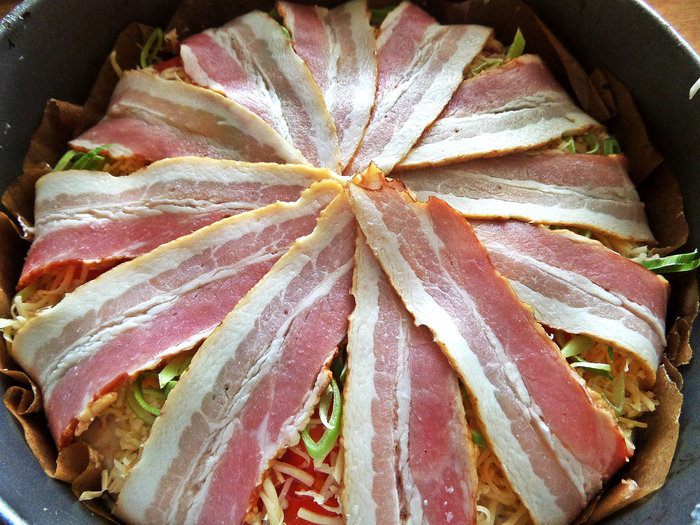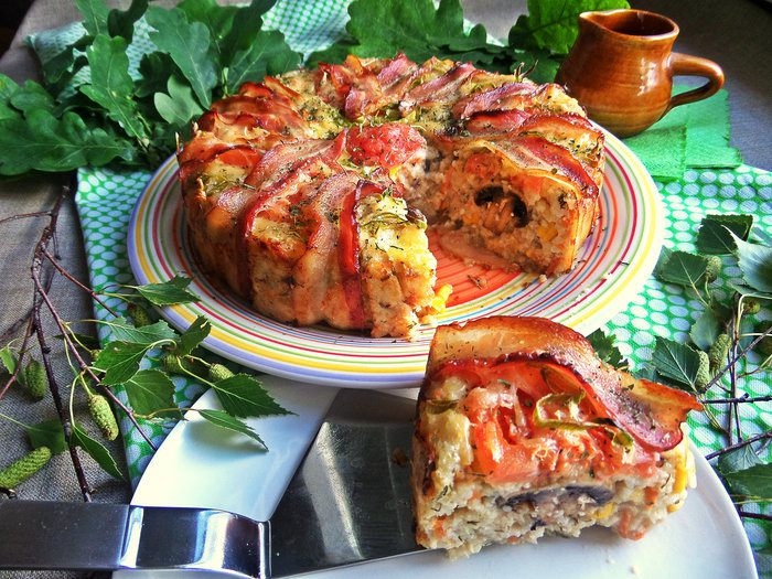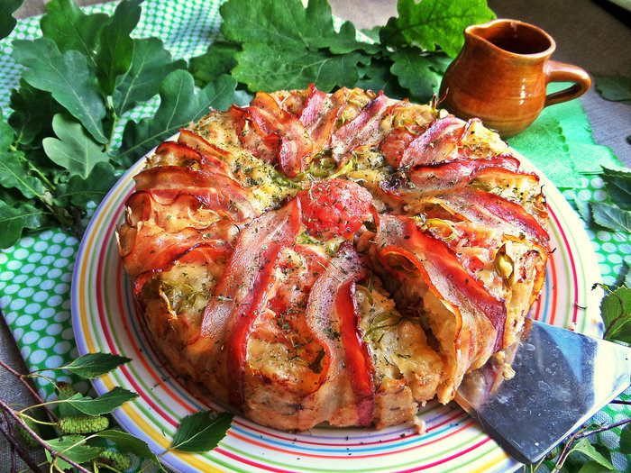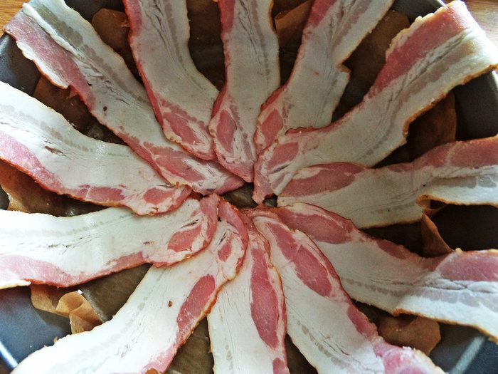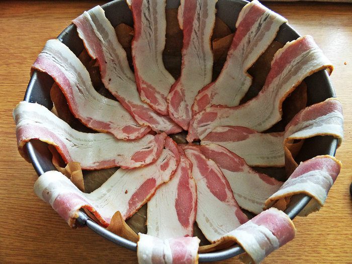 Для оформления нужен бекон в тонких длинных ломтиках.