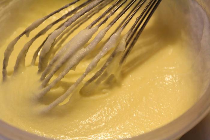 Масло взбиваем с сахаром до однородного муссового состояния.