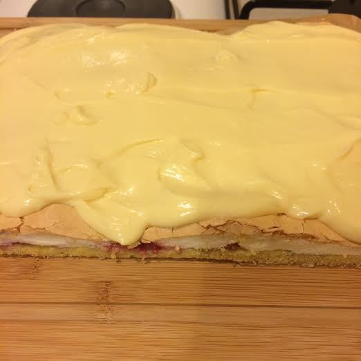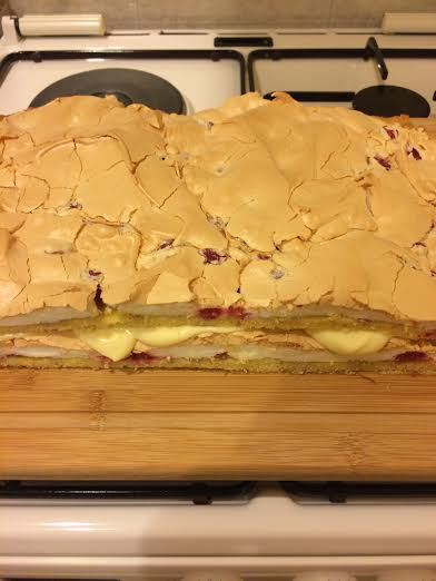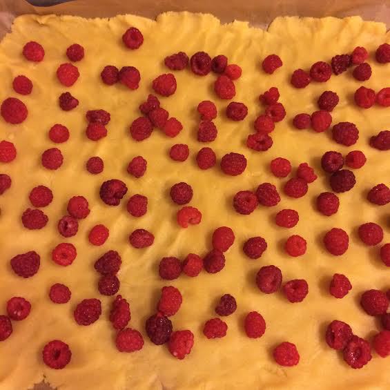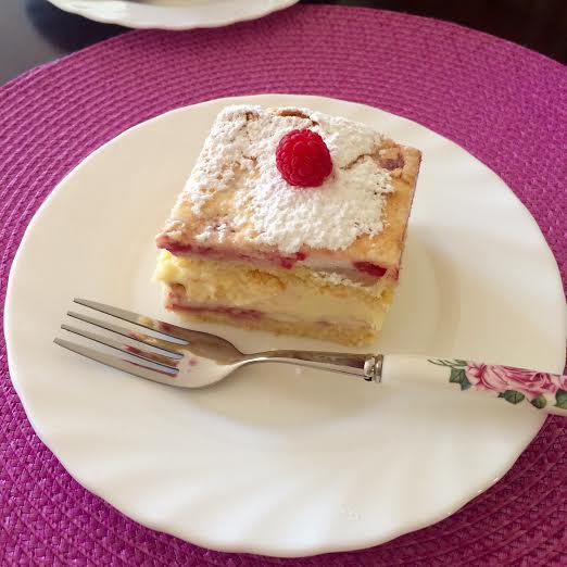 У нас это пирожное называют «Опиум», но недавно узнала,что оно называется пляцок «Пани Валевская». У нас его пекут с лимоном, вишней, кизилом и малиной. Мой самый любимый вариант — это с кизилом, мне нравится сочетание кисло-сладкой начинки, но так как сезон кизила еще не пришел, предлагаю Вам вариант с малиной.