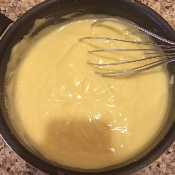 Перелить в кастрюльку и варить до загустения, постоянно помешивая. Готовый крем перелить в чистую посуду и накрыть пленкой, дать остыть.
