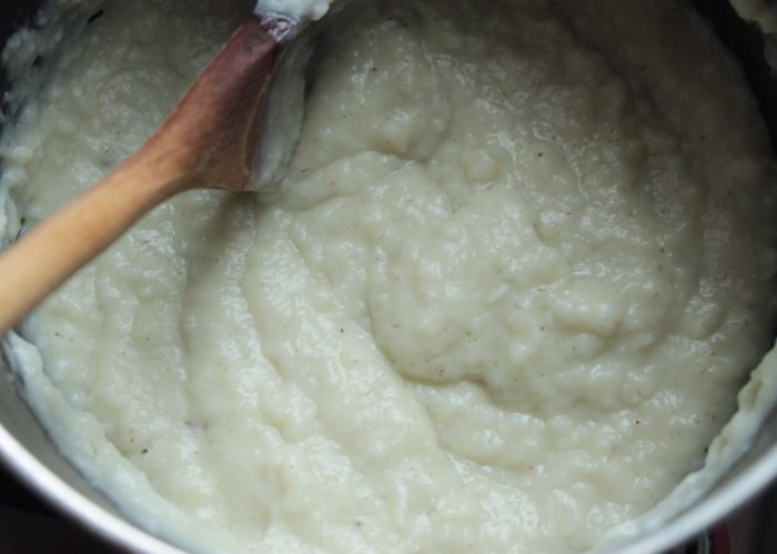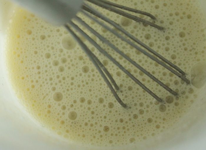 Довести крем, постоянно помешивая, на маленьком огне до кипения. Здесь важно не переварить крем, чтобы он остался нежным. Как только появятся первые пузырьки, сразу снимать с огня.