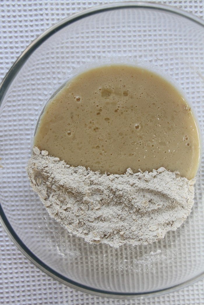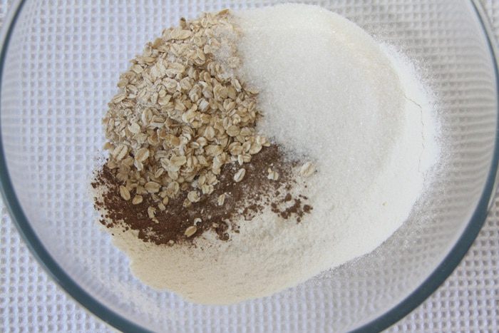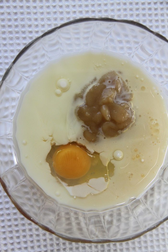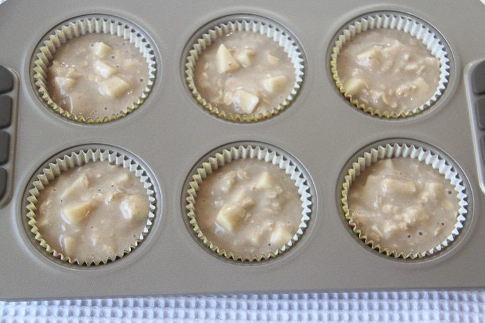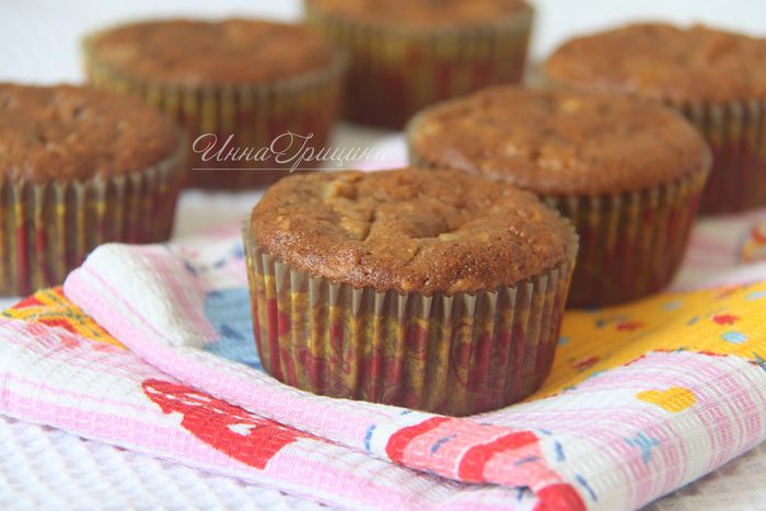Понадобится: 1 яблоко, 1 яйцо, 4 ст. л. растительного масла, 2 пакетика сухой овсяной каши по 35 г (или 70 г овсянки быстрого приготовления), 1 щепотка соли, 75 г сахара, 1 маленькая пачка детского яблочного пюре (125 г), 90 г молока, 90 г муки, по 1/2 ч. л. разрыхлителя и соды, 1 ч. л. молотой корицы, 1/2 ч. л. ванильного экстракта.