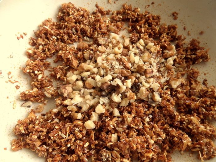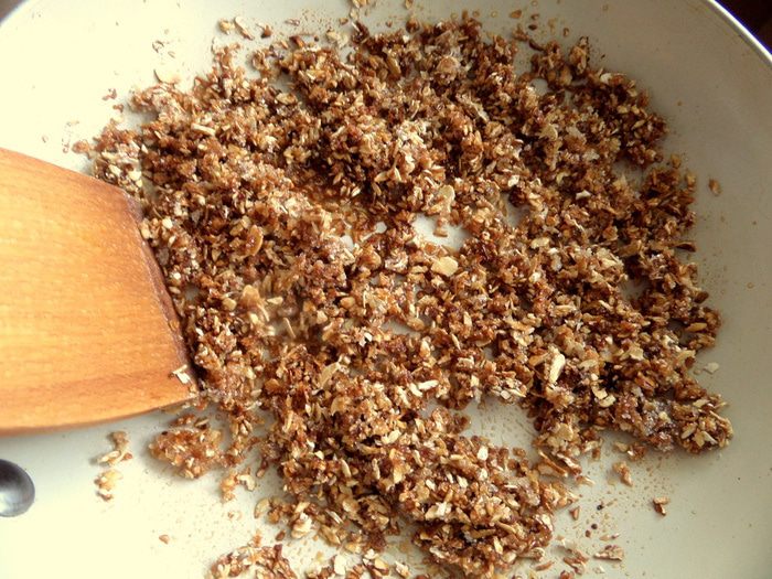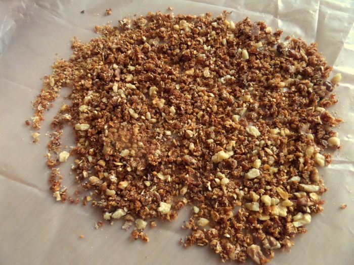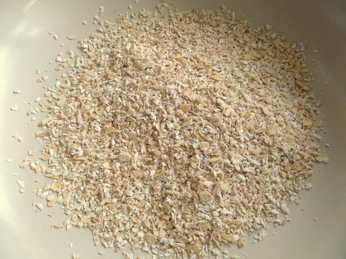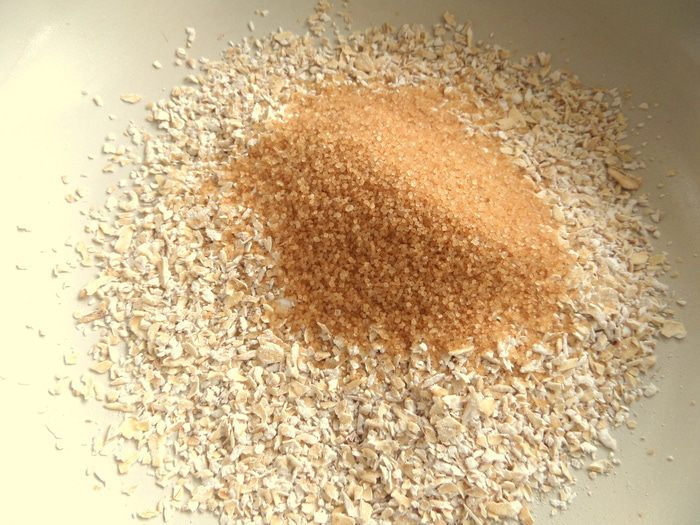 Для грильяжа нужно смолоть овсяные хлопья на кофемолке (не в порошок) или воспользоваться овсяными отрубями, если они есть.