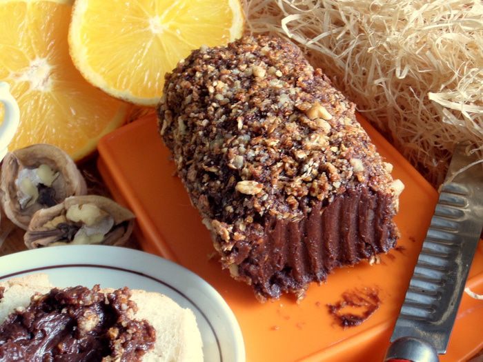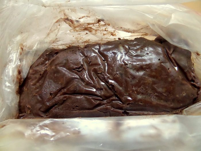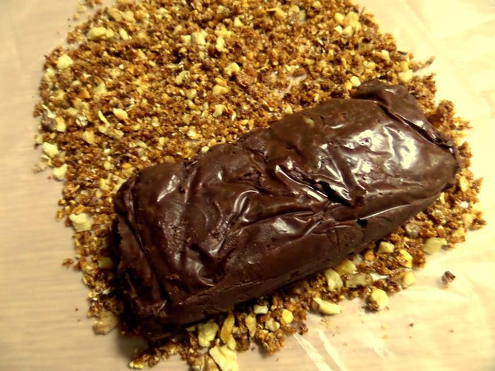 Переносим холодный кусок шок. масла прямо на грильяж.