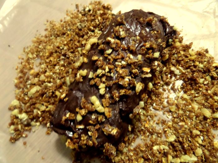 Переложить шоколадную массу в плотный пакет и поместить в холодильник, чтобы она схватилась. Можно на данном этапе закончить рецепт, уже вкусно!