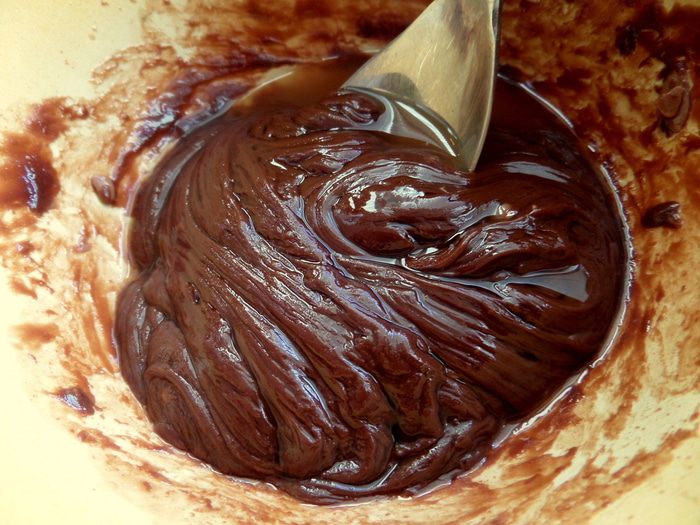 Когда шоколад станет мягким, можно перемешать его в однородную массу.