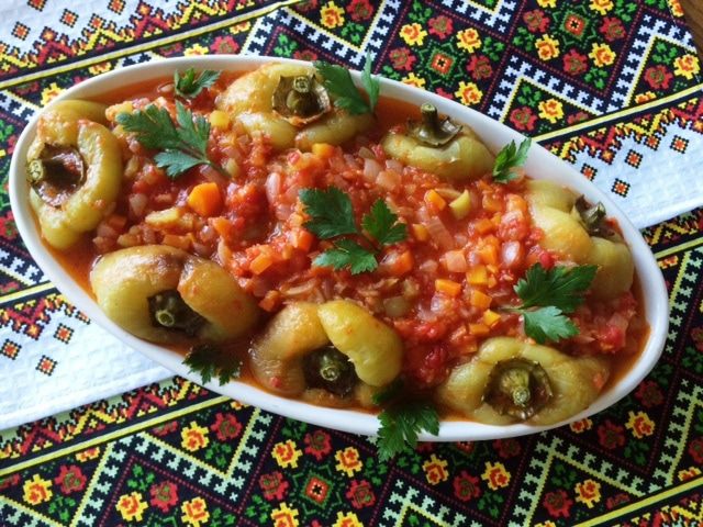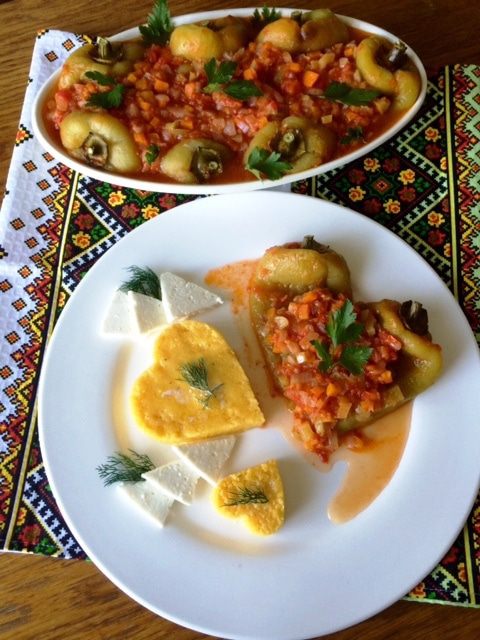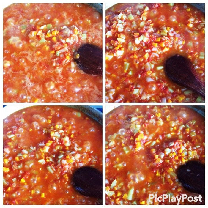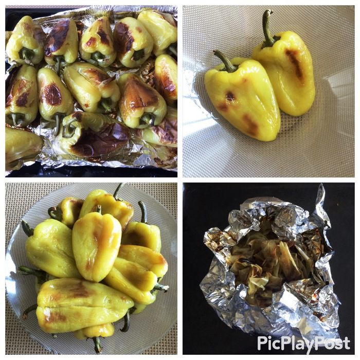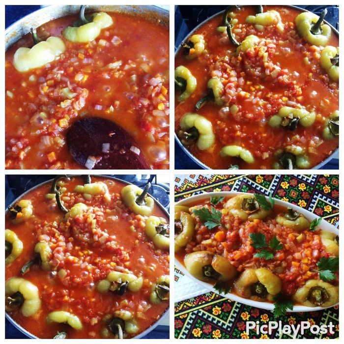 Затем в подливу сливаем сок от перцев, перемешиваем и добавляем перец, либо целиком, либо нарезанный и даем смеси вместе с перцем покипеть еще минут 10-15. Это для того, чтобы перец пропитался овощными соками и отдал свой вкус. Выключаем газ и остужаем перцы, в случае, если мы их приготовили на сейчас.
