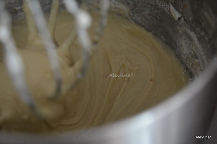Добавить яйца, ваниль. Все вместе взбить. Добавить муку в три приема и перемешать, йогурт, перемешать.