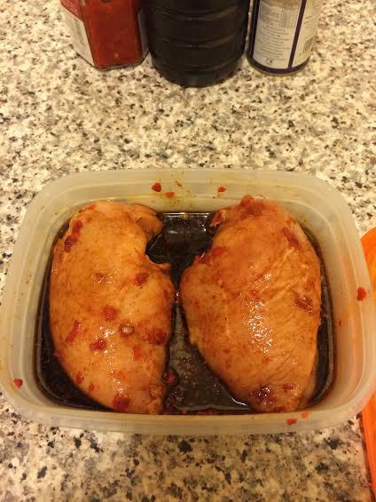 Маринад: куриные грудки натереть (гарам масалой, аджикой и чикен-тиккой) залить соевым соусом и соком лимона. Поставить в холодильник минимум на час.