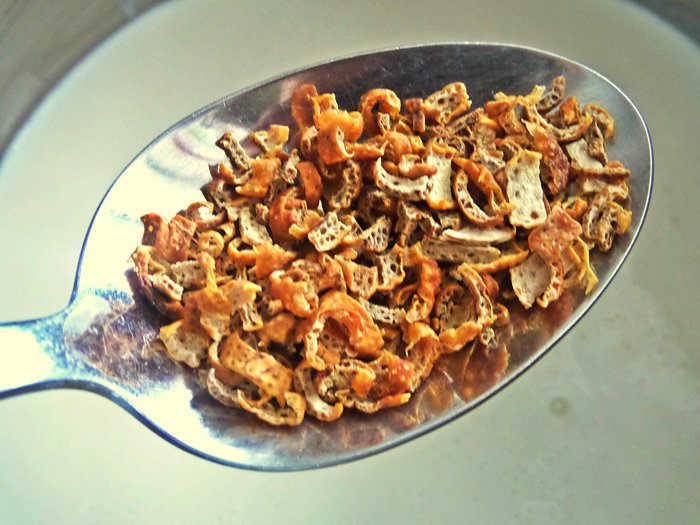 Всыпать любую цедру. У меня высушенная апельсиновая, но можно и свежую.
