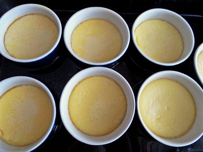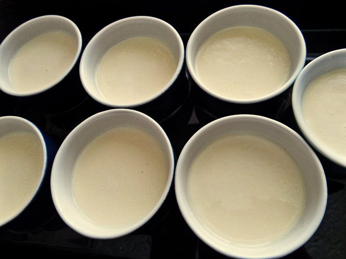 Разлить по керамическим формочкам — 7 шт. Сами формочки поставить в большую форму с водой.
