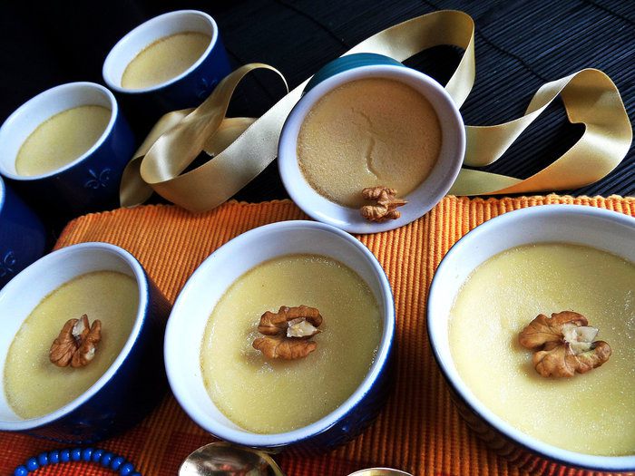Запекалась панна-котта минут 40-45, при более крупных формочках-дольше, серединка должна пружинить при нажатии.