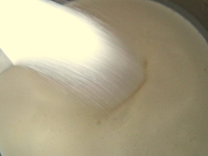 Всыпать мелкий сахар (в оригинале 80 г) с ванилью (лучше палочка ванили).