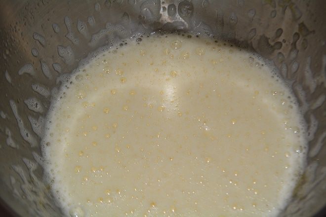 Яйца взбить с сахаром и солью до пышной пены.