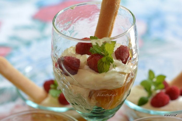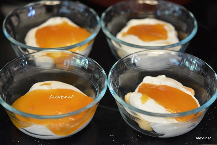 Готовый лимонный курд размягчить в микроволновке на 5-15 секунд. Печенье дамские пальчики выложить на дно низких стаканов, фужеров или формочек.