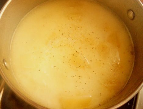 Влить в кастрюлю воду и сливки (я брала 10%). Посолить, поперчить и варить на медленном огне 15-20 минут до готовности.
