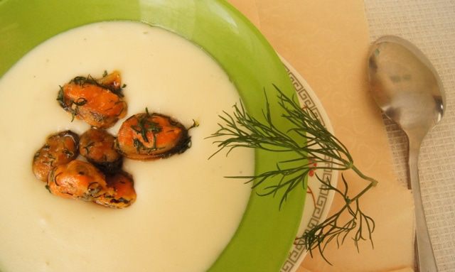 Удивительно нежный и вкусный супчик получился. Вместо мидий можно взять креветки.