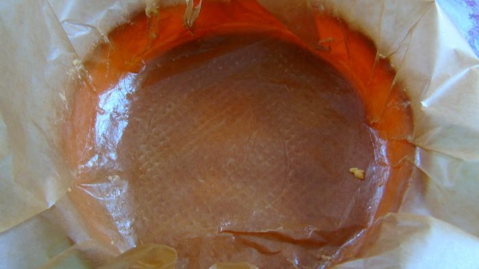 Форму застилаем пергаментом и смазываем сливочным маслом.