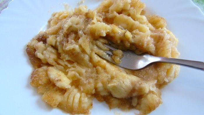Бананы разомните вилкой в пюре.