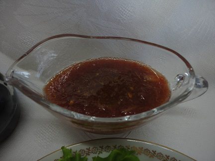 Перед подачей заправить салат томатной заливкой и перемешать.