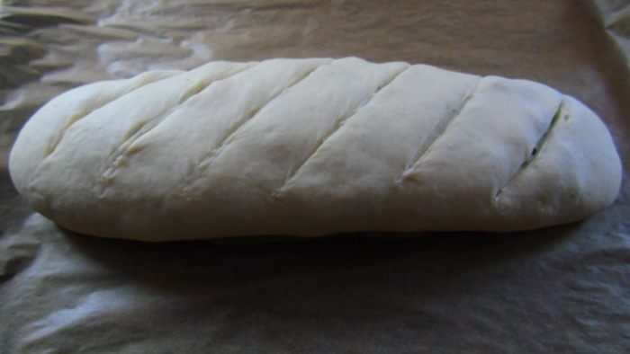Делаем сверху надрезы и отправляем в разогретую до 190°C духовку на 30-35 минут.