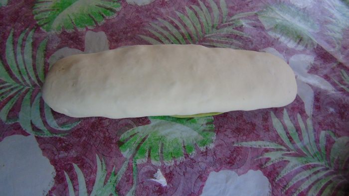 Заворачиваем в рулет и, накрыв полотенцем, даем подойти 25-30 минут.