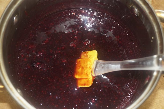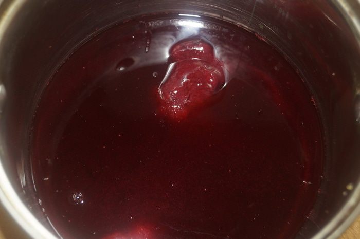В сотейник вылить сок, положить сахар и ягодное пюре.