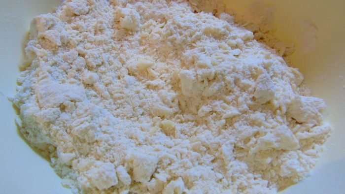 Добавляем холодное масло и размешиваем в крошку.