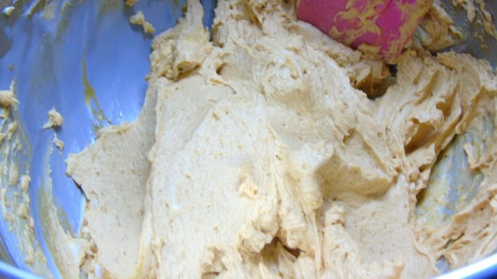 Готовим крем: взбиваем масло в пышную пену, затем добавляем остывшую карамель и хорошо взбиваем.