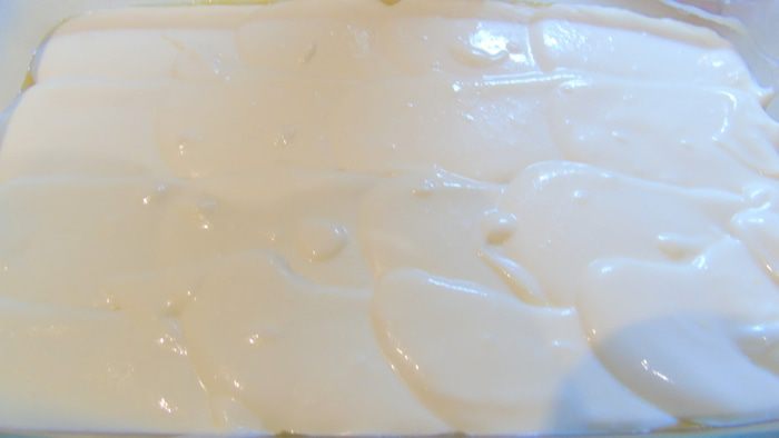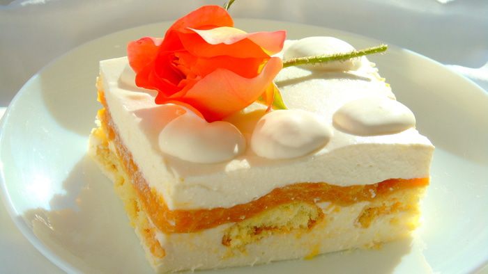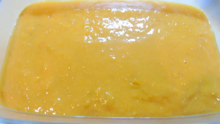 Желатин замачиваем в 100 г кипяченной комнатной воды и оставляем на 15 минут, а затем подогреваем на водяной бане или в микроволновке. Творог смешиваем со сметаной и 100 г сахара, взбиваем блендером и в конце вливаем половину желатина и еще раз взбиваем. Фрукты или ягоды заливаем 100 мл воды и добавляем 100 г сахара, ставим на огонь. Варим до мягкости. Взбиваем блендером и так же добавляем вторую половину желатина.