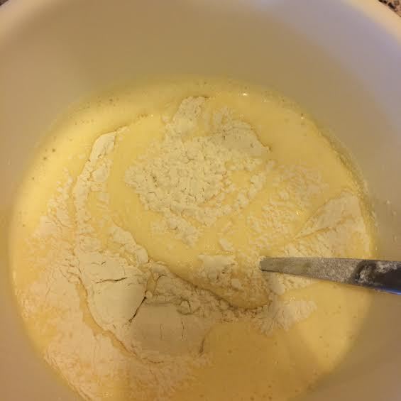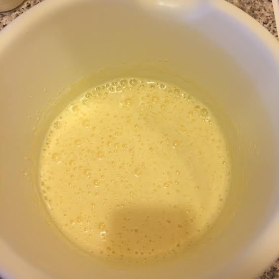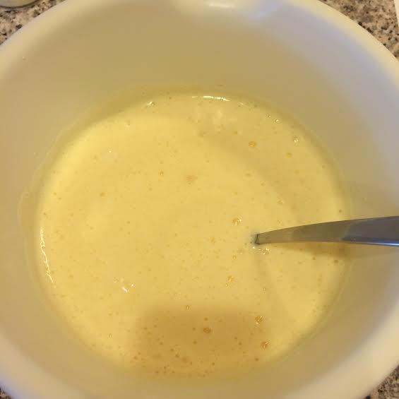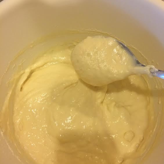 Смешать яичную смесь с мацони, солью и аккуратно перемешать.