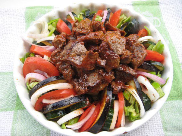 Летнее блюдо из ярких, сочных, вкусных овощей с пикантной сочной телятиной понравится не только женщинам, но и мужчинам, которые своей жизни без мяса не представляют.