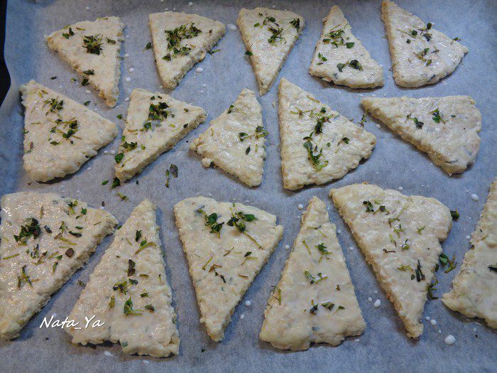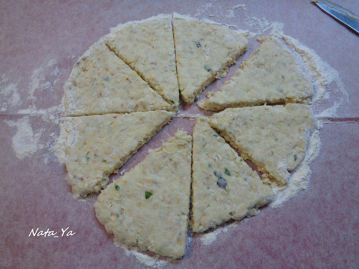 И нарежьте на 8 частей. Получатся сконы треугольной формы.