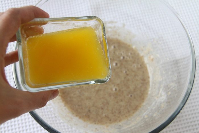 Сливочное масло растопить (можно в свч) и добавить (еле теплое) в тесто.
