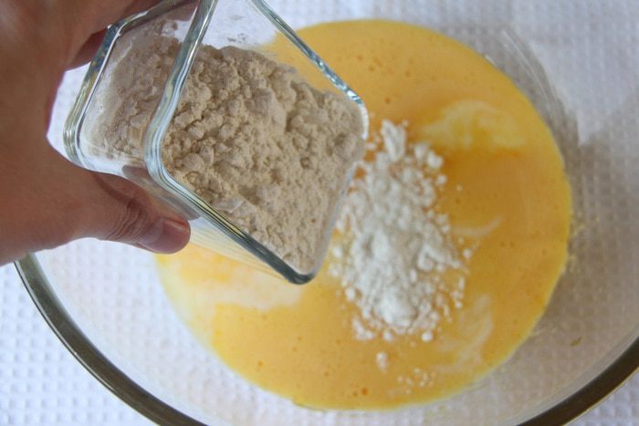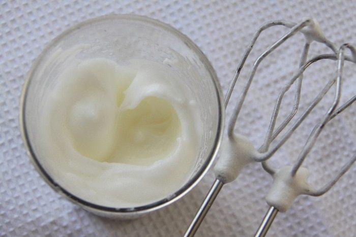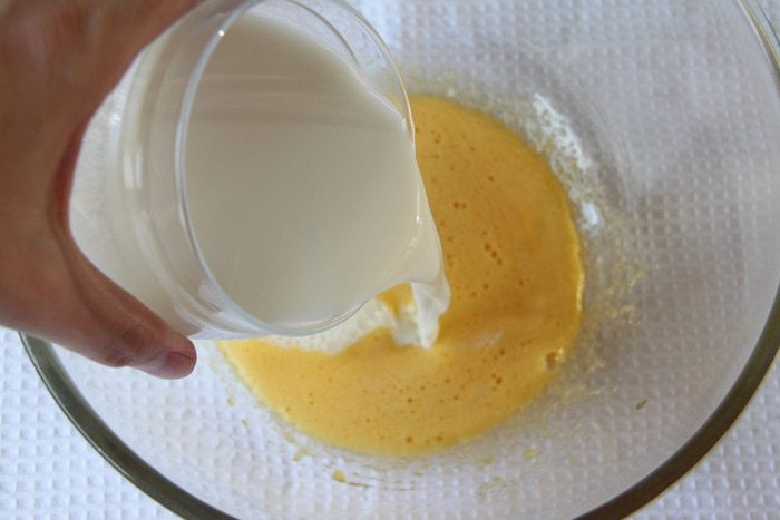 Добавить ликер или ваниль (или любой другой ароматизатор, чтобы убрать запах и вкус яиц).