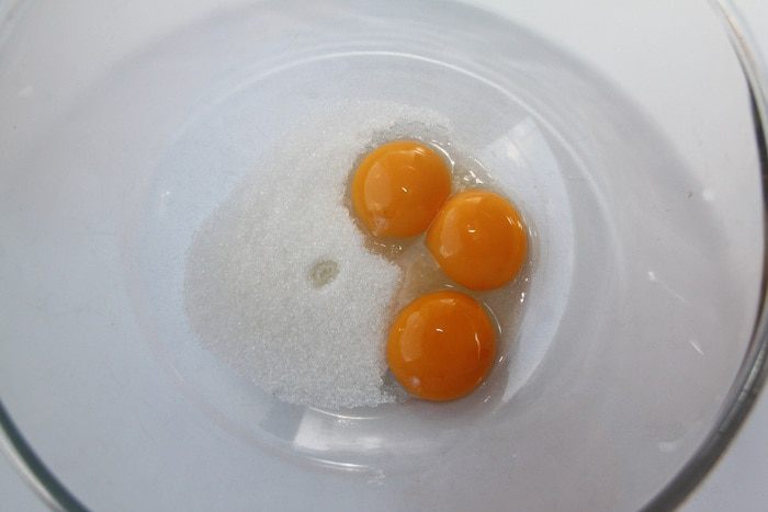 Яйца разделить на белки и желтки, желтки соединить с сахаром.