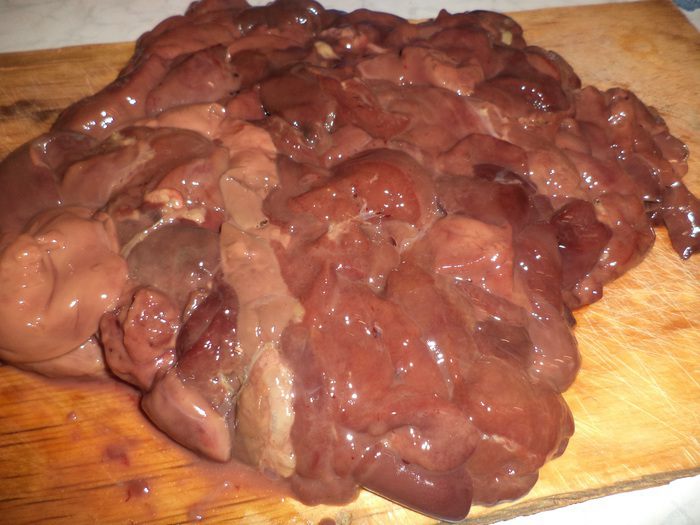 Печенку вымыть и обсушить.