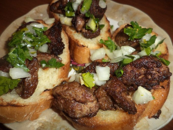 А вот еще одно блюдо быстрого приготовления. Хрустящие, аппетитные гренки с жареной печенкой и маринованным луком. Попробуйте, вам обязательно понравится.