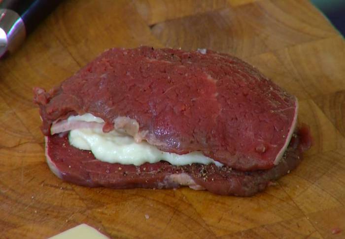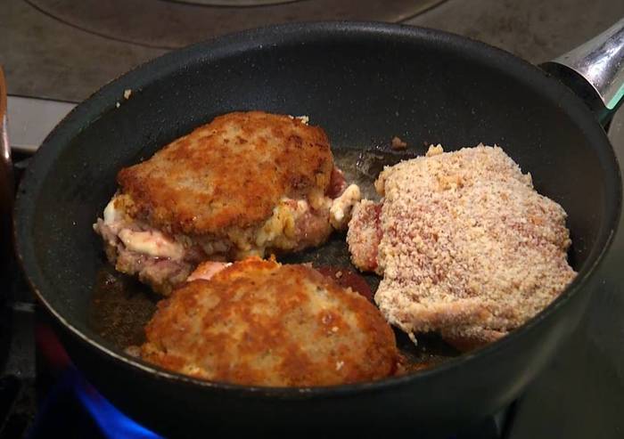 Приготовить бешамель: растопить в сковороде сливочное масло, всыпать муку и, непрерывно перемешивая венчиком, заварить, затем тонкой струйкой влить молоко, продолжая вымешивать до получения однородного соуса. Снять сковороду с огня, добавить мускатный орех и еще несколько минут вымешивать.