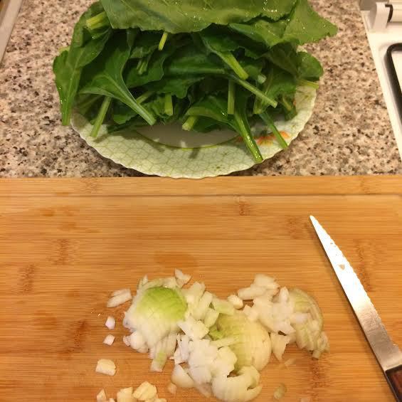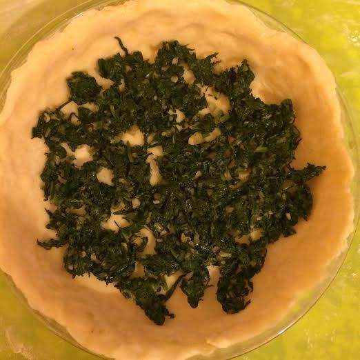 На тесто выложить шпинат.