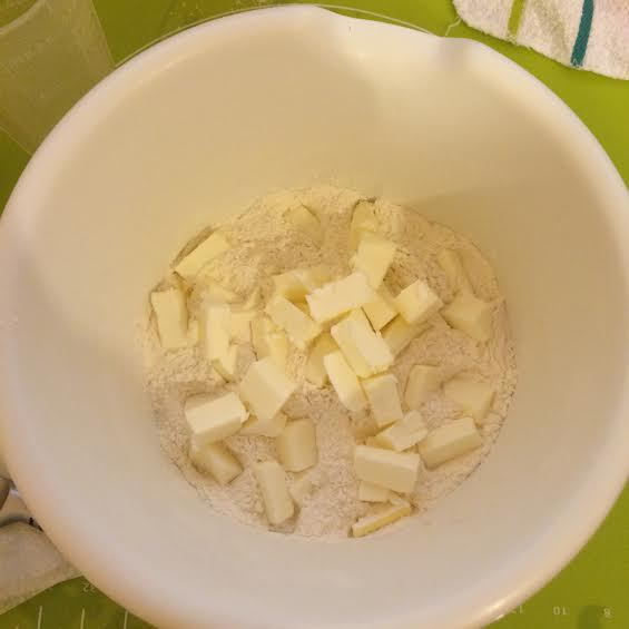 Тесто: муку, масло и соль смешать в крошку.