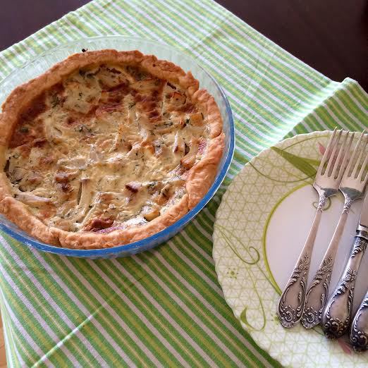 Духовку нагреть до 200°С. Форму 26 см смазать маслом. Тесто раскатать и выложить в форму.