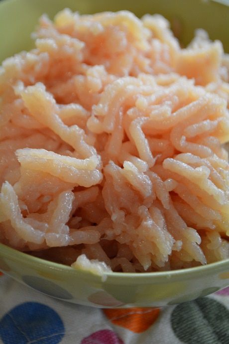 Тем временем займемся грудкой. Ее нужно помыть, обсушить бумажным полотенцем и прокрутить на мясорубке.