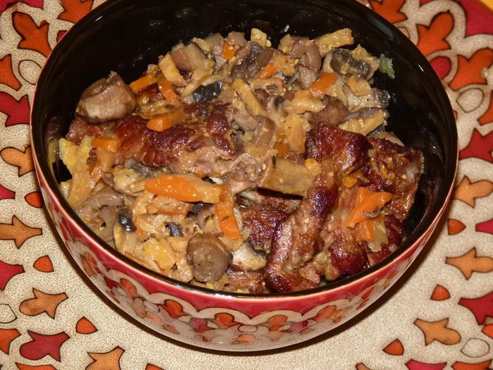Предлагаю рецепт нежных ребрышек с грибами и овощами