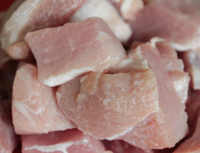 Свинину лучше взять не очень жирную, нарезать на крупные куски.