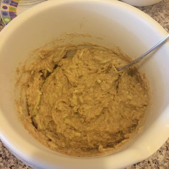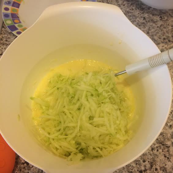 Цукини натереть на крупной терке, добавить в кефир и перемешать.