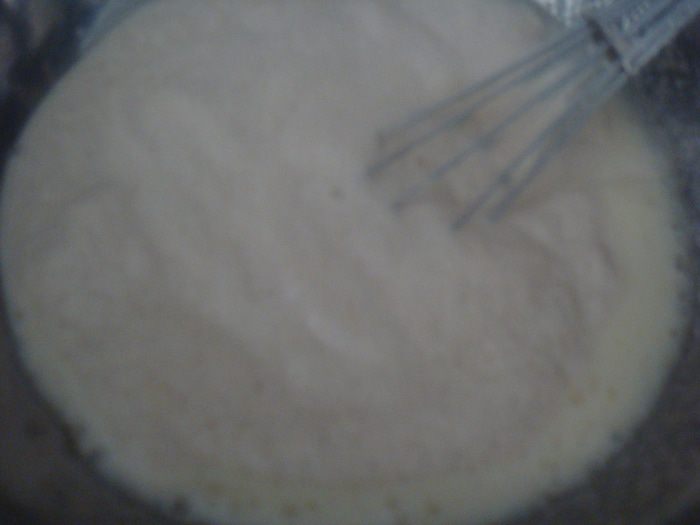 В молоко раскрошить дрожжи. Добавить 1 ст. л. сахара и 2 ст. л. муки, размешать венчиком и поставить в теплое место для увеличения опары. В большой миске взбить яйцо с оставшимся сахаром и солью, добавить опару, влить маргарин (маргарин предварительно растопить в микроволновке), всыпать постепенно просеянную муку, замесить тесто.