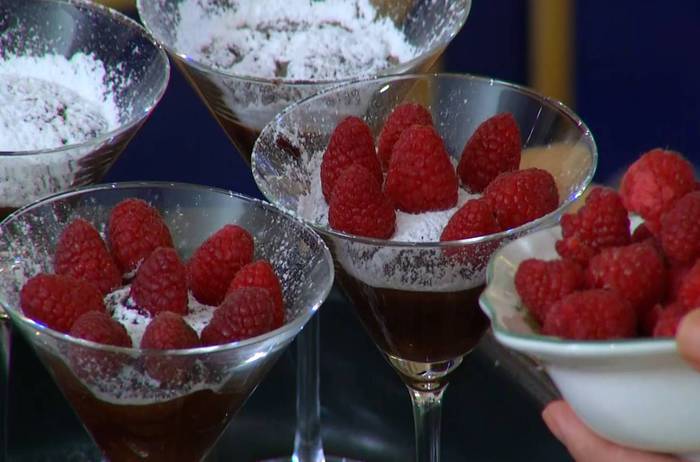 Если у вас молочный шоколад, сахар к желткам можно не добавлять вообще. Вместо малины можно украсить мусс свежей вишней, а зимой — апельсиновыми дольками. Преимущество такого десерта в том, что его можно приготовить накануне приема гостей: проведя ночь в холодильнике, он будет только вкуснее!