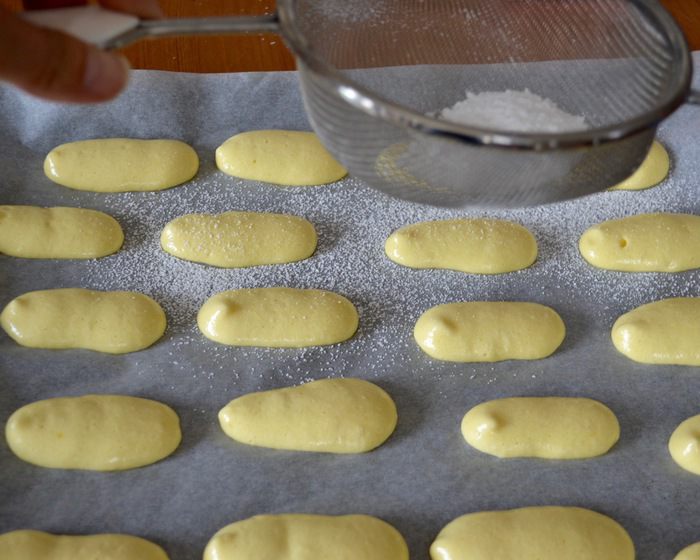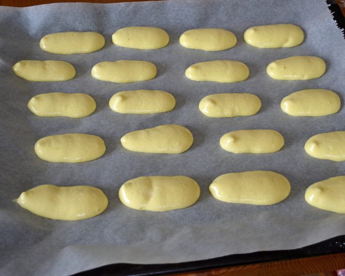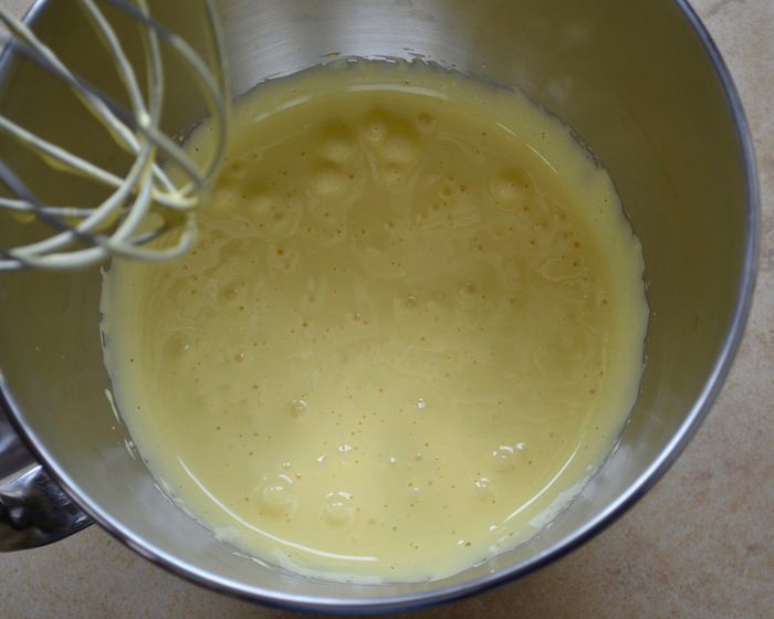 Итак, яйца комнатной температуры разделить на белки и желтки. Желтки взбить со 100 г сахара и с ванилином не очень сильно.